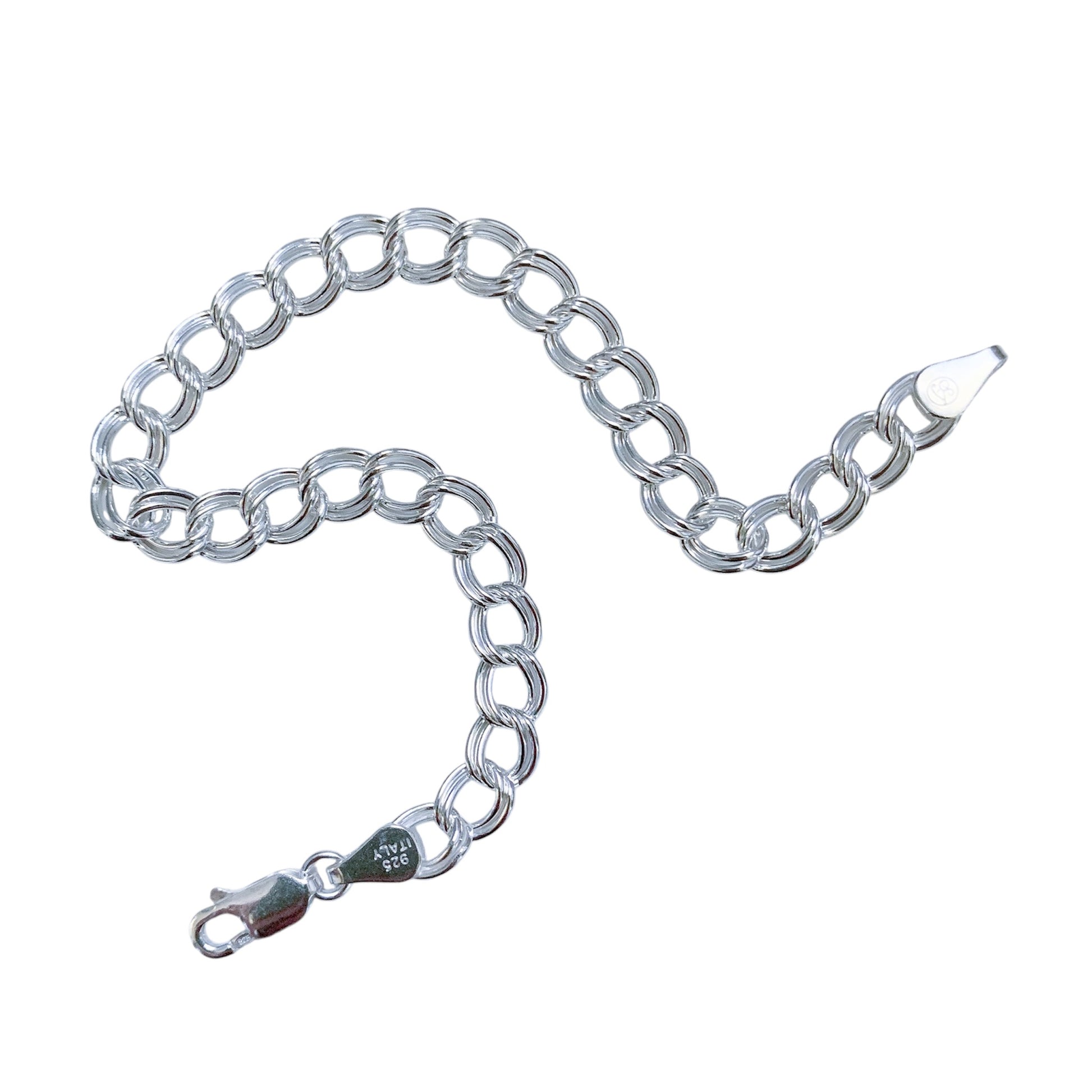 This 7" sterling silver bracelet can be worn alone for a minimalist look or be a blank canvas waiting for your personal touch. Add charms representing your passions, memories, or aspirations to create a truly unique accessory.